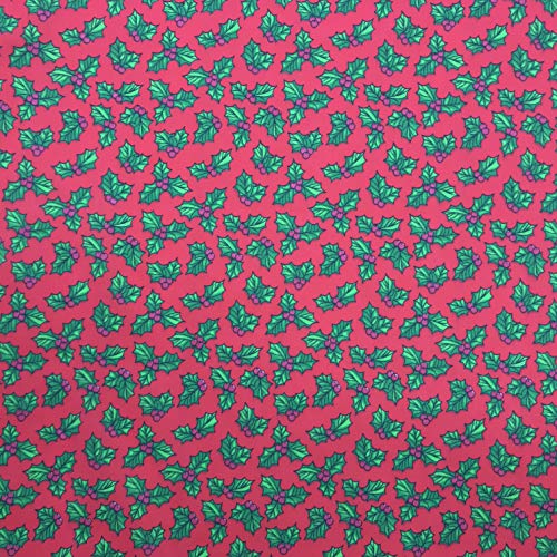 PRESTIGE FASHION Tessuti in policotone con decorazione natalizia tessuti, per patchwork e imbottiture, al metro Holly Leaves - Red