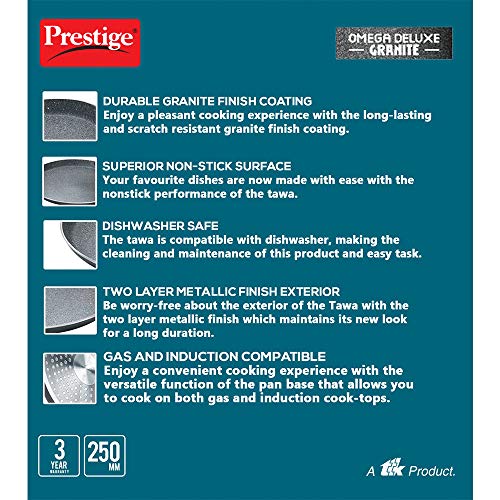 Prestige 250 mm Granito Omega Deluxe Omni Non-Stick Dosa Tava/Griddle, 25,4 cm