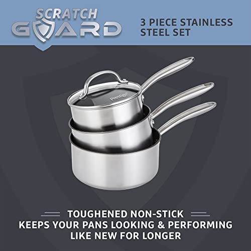 Prestige Set di 3 pentole in acciaio inox con protezione antigraffio con coperchio, set di 3 casseruole da 16, 18 e 20 cm, resistenti ai graffi, adatte a tutti i piani cottura, forno e lavastoviglie
