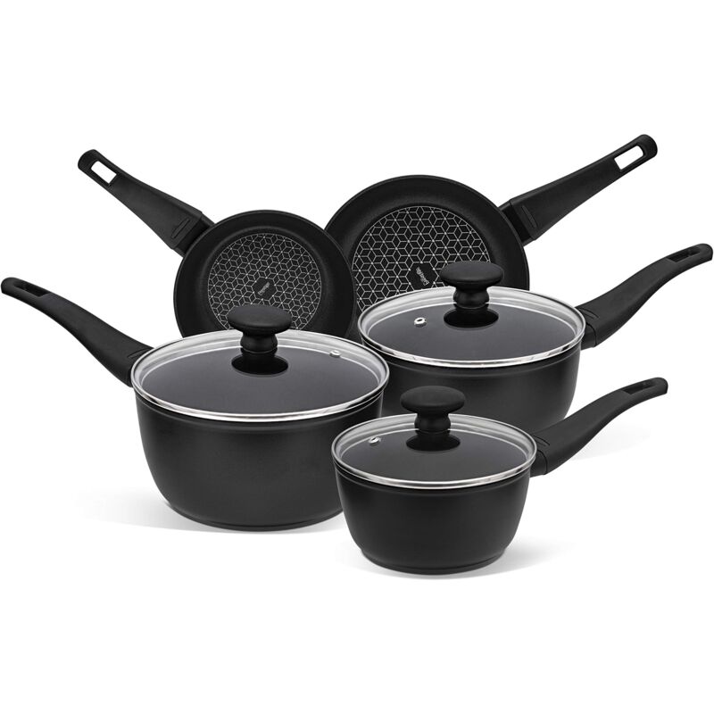 La gamma Thermo Smart è stata progettata per semplificare la vita. Il suo indicatore di calore diventa verde quando le pentole e le padelle sono abbastanza calde per iniziare a cucinare il pasto e vi aiuterà a risparmiare tempo e a creare il pasto ideale per la vostra famiglia. Il set di pentole e padelle antiaderenti Prestige vi aiuterà anche a cucinare senza olio o meno per uno stile di vita più sano. L'antiaderente con diamante ti permetterà di pulirlo più velocemente, in modo da poterti rilassare e goderti i tuoi cari. È anche extra sicuro, rendendolo un set di pentole PFOA. I set di pentole Prestige sono ideali per portare la vostra creatività culinaria al livello successivo. La maniglia extra sicura ti aiuterà a trasportare le tue creazioni in modo sicuro e confortevole grazie alla sua impugnatura morbida al tatto. Il set di pentole a induzione Prestige è anche molto versatile e può essere utilizzato su tutti i piani cottura, compresi gas ed elettrici. Questo set di pentole e