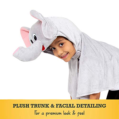 Caratteristiche: questo costume da animale per bambini presenta un autentico e ultra-morbido cappotto finto elefante, nonché una testa e un tronco di peluche robusti. I grandi occhi ovali e acrilici e i dettagli della bocca rosso brillante aggiungono maggiore attenzione ai dettagli. Il cappuccio elasticizzato è completo di morbide orecchie bicolore (rosa/grigio) e chiusura in velcro sul collo. Il design versatile del mantello lo permette di godere dai 3 ai 7 anni.