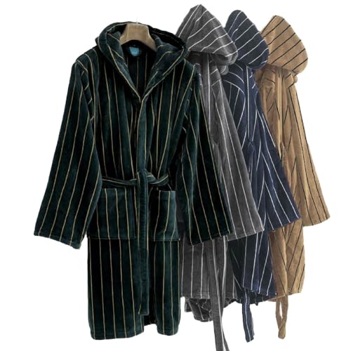 Accappatoio UOMO con cappuccio in morbida spugna di cotone jacquard TINTO IN FILO prodotto da Pretti.