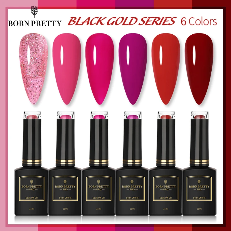 BORN PRETTY Pro 6Bottles Gel Nail Polish Set Pure-Color Nail Gel Colorful Gel Varnish Base Top Coat Soak Off UV Gel Polish