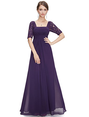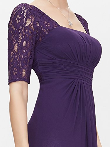 Ever Pretty Abito lungo da sera, a mezza manica, con scollatura squadrata, a pieghe, 08038, Purple, UK 6