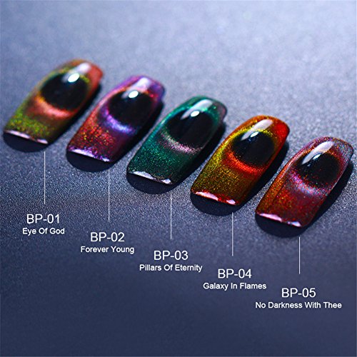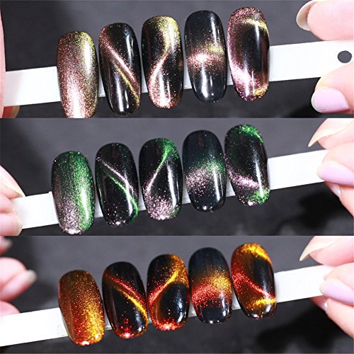 Born Pretty 5 Bottles Nail Art Cat Eye UV Gel Polish Holographic Chameleon Magnetic Soak Off Black Base Needed with 1Pc Magnetic Stick
