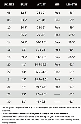 Dimensioni: per scegliere la taglia corretta, si prega di fare riferimento alla nostra tabella delle taglie nelle immagini. Quando si seleziona la taglia del vestito, i numeri visualizzati corrispondono alla taglia del Regno Unito, quindi assicurarsi che sia la taglia corretta nella tabella.