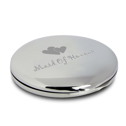 Pretty Silver Finish Engraved Round Compact Mirror for Maid of Honour with Hearts Motif Great Gifts Idea for Wedding