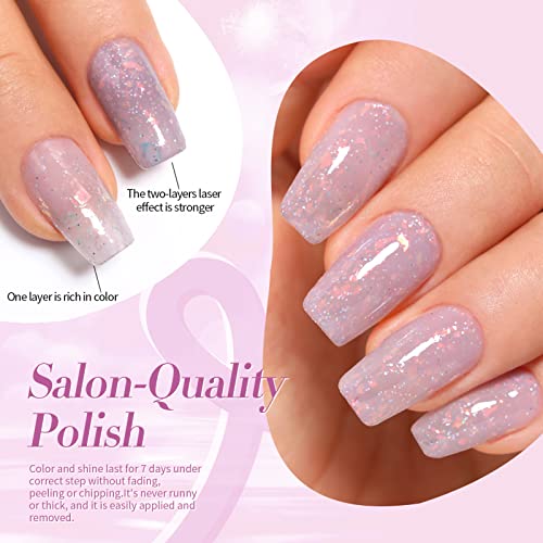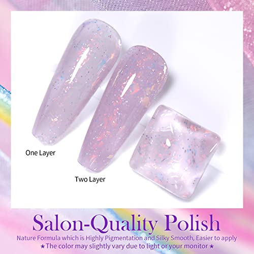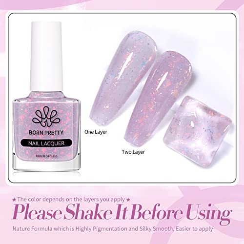 Born Pretty Smalto olografico con paillettes glitter, Smalto glitterato trasparente colorato per nail art, lavanda 7ml