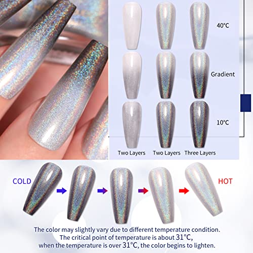【Set di smalti termici che cambiano colore】Smalto per unghie da 10ml con effetto olografico e cambia colore con la temperatura e dona alle unghie un effetto magico. Come principiante, puoi ottenere unghie relativamente belle senza molta pratica. Personalizza il tuo umore, trucco e vestiti con colori diversi.