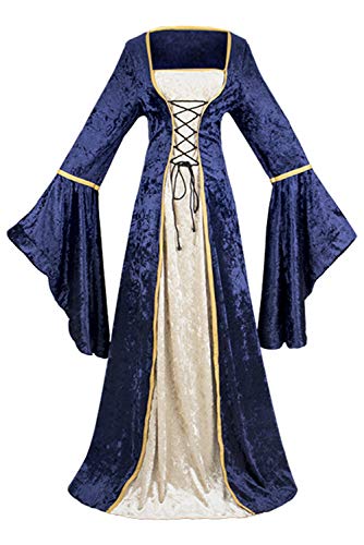Prettycos - Costume medievale da donna in stile rinascimentale, a vita alta, con maniche svasate, in cotone, con coulisse Marina Militare S