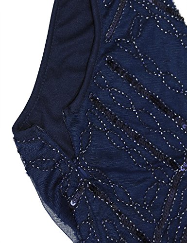 PrettyGuide Donne 1920s Annata Lustrino Perline Bordo Smerlato Vestito con Le Frange Gatsby S Marina