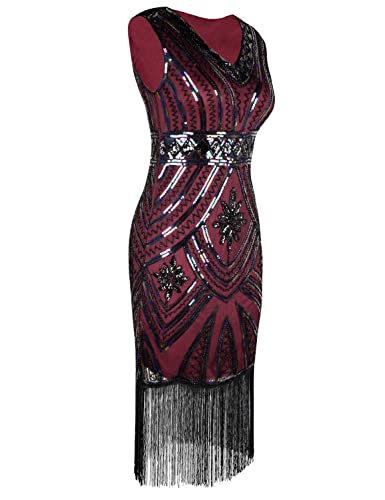 PrettyGuide Gatsby - Vestito da donna ispirato a paillette Art Deco con mantello