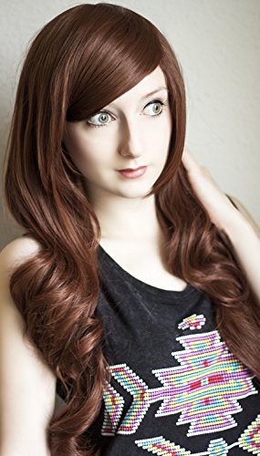 Prettyland C590 - Lunga parrucca capelli lunghi 70 cm rosso marrone morbide ondulature sui punti