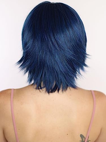 Parrucca di capelli corti e di media lunghezza / spalla in molti colori diversi, liscia e leggermente frangiata grazie agli strati a gradini.