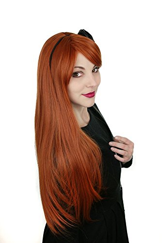 Prettyland - parrucca di capelli lunghi C321 spessa liscia in colore rosso arancio con un pesante frangia