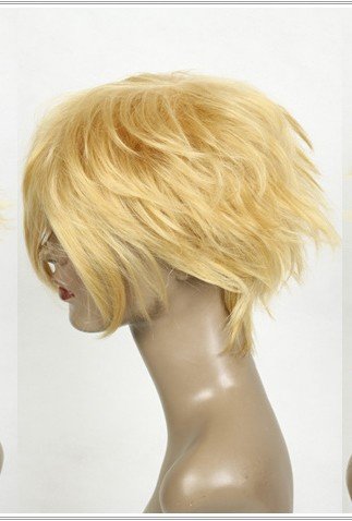 Parrucca corta, ca. 30cm capelli corti scalati e sfilati, già acconciati in biondo o nero, per donne o uomini.