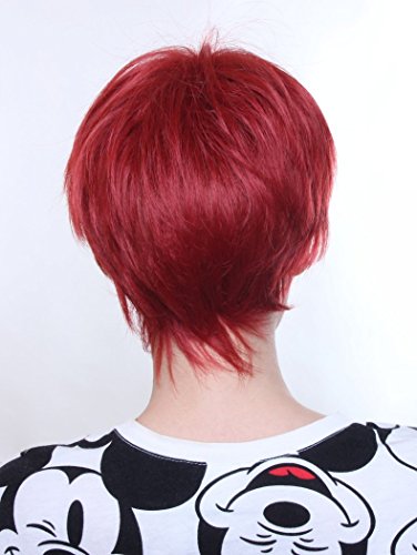 Prettyland C514 - Parrucca Corta Sfilata Pixie Cut Scalato Capelli Corti Frangetta Tinta Intensa Festa - Rosso