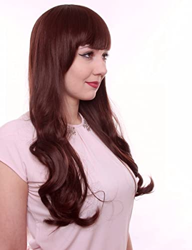 parrucca lunga, ca. 65cm capelli lunghi mossi ondulati in una tinta Marrone naturale con frangetta liscia lunga diritta