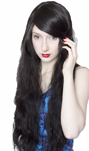 Prettyland C372 - nero parrucca lunga 70cm mossa ricci leggeri stile afro capelli mossi naturale frangetta laterale