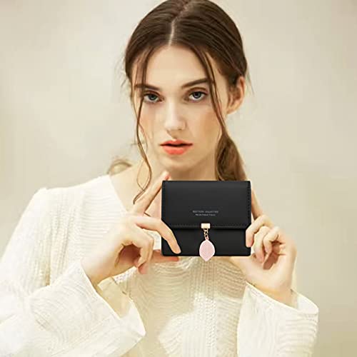 PrettyNuo - Portafoglio da donna in pelle PU, con nappa, per donna Nero Nero Small