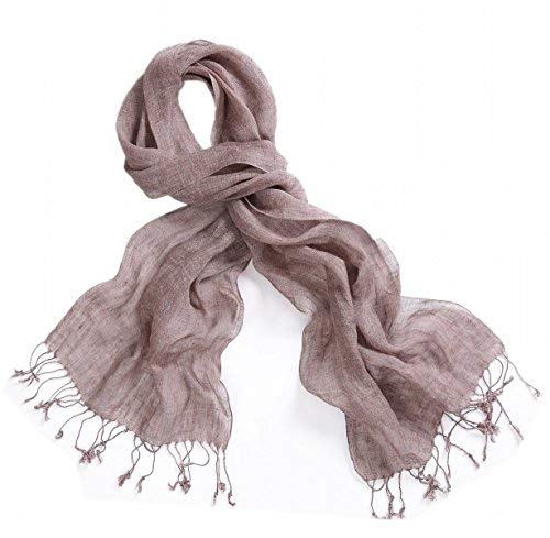 Prettystern Uomo 200cm Lunga Sciarpa Lino Pashmina Leggera Estiva Primavera Foulard con Frange Tinta Unita T23 marrone