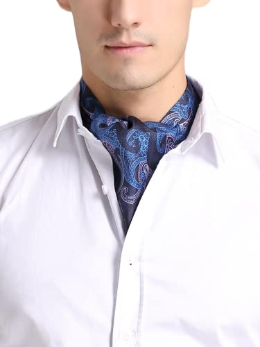 Prettystern Ascot Uomo Seta Cravatta Fazzoletto Foulard sciarpa di seta Da Collo Due Strati 8. Paisley Blu