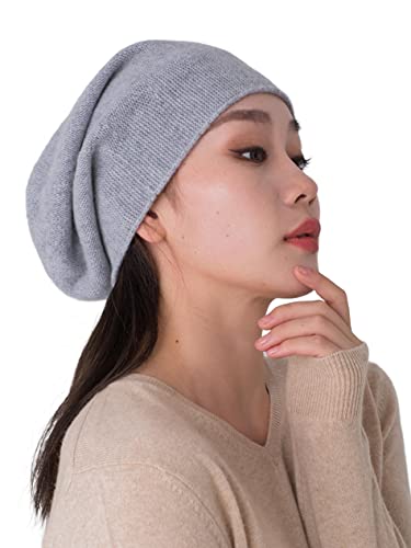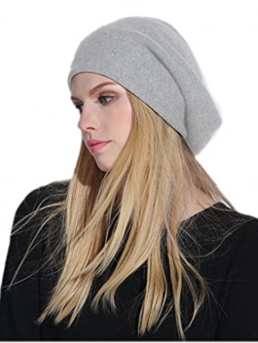 Prettystern Berretti Donna in Cachemire Invernale Cappello in Morbida in Zuccotto Lana Cashmere Beanie Grigio Chiaro