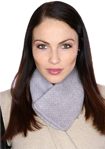 Prettystern Donna 100% cachemire lana sciarpa corta Fazzoletti da collo Colletto ricamato grigio chiaro
