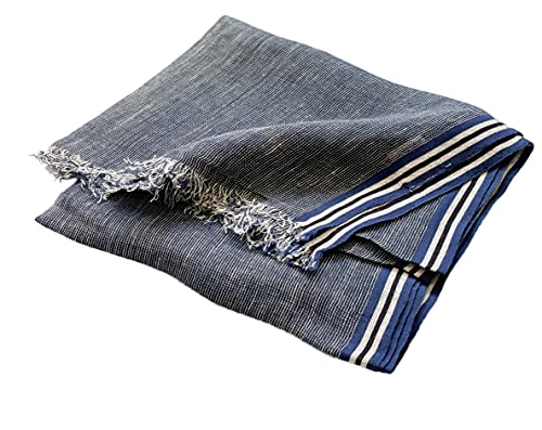 Prettystern Uomo Donna Lunga Sciarpa a Righe 100% Lino Pashmina Leggera Estiva Primavera Foulard Di Stile Marittimo Blu Scuro Bianco T71