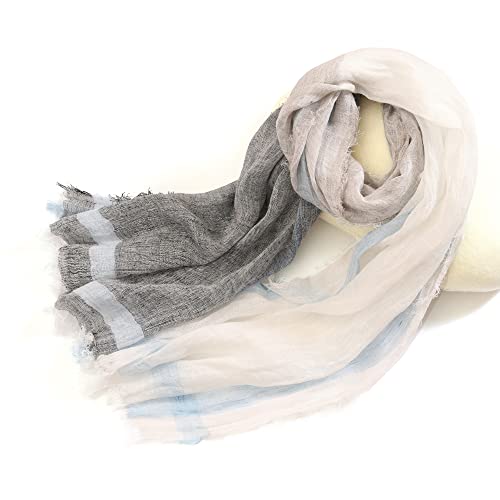 Prettystern Uomo Donna Lunga Sciarpa a Righe 100% Lino Pashmina Leggera Estiva Primavera Foulard Di Stile Marittimo Blu-bianco-grigio