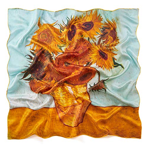 Prettystern Donna 90cm in Twill Di Raso Seta Arrotolato a Mano Foulard Scialli Fazzoletti Da Collo Regalo Idee Van Gogh Vaso Con Girasoli C670