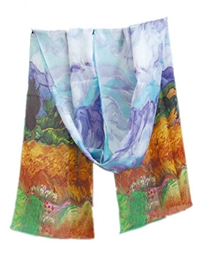 Prettystern P645-160 cm Riproduzione Della Pittura Impressionista Seidenschal- Van Gogh - Campo di Grano Con Cipressi
