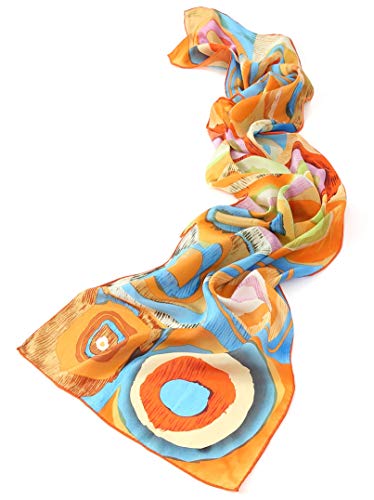 Prettystern Sciarpa Arte Donna Colorata 160cm Di Seta Wassily Kandinsky Foulard di Seta Pura elegante cerimonia Studio Sul Quadrato Arancione P815