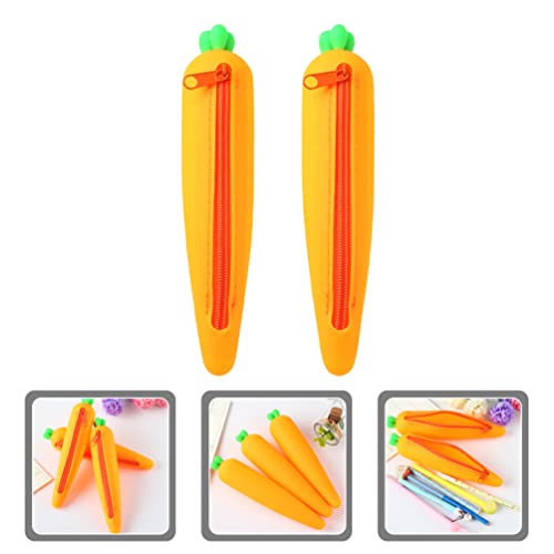 PRETYZOOM 2 astucci in silicone per carota, astuccio per matite Kawaii, astuccio per monete, astuccio per cancelleria, astuccio per bambini, studenti