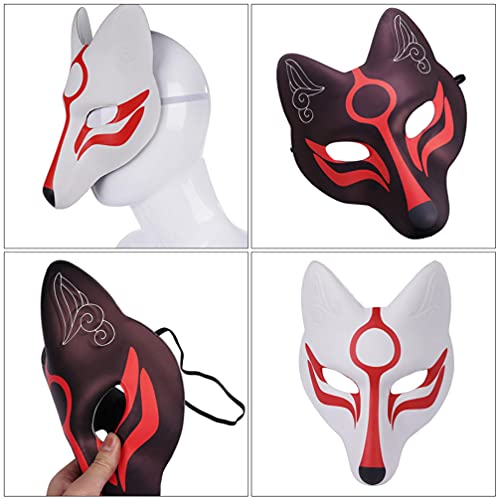 PRETYZOOM 2pcs Fox giapponese Kabuki Kitsune Maschere per donne e bambini Halloween Costume Prop per (Nero Bianco)