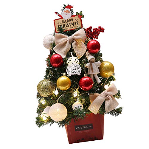 PRETYZOOOM Albero di Natale Artificiale con Illuminazione, 50 cm, Piccolo Albero di Natale Decorato, Senza Batteria, Decorazione per la scrivania, Natale, Festival