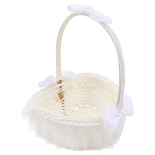 PRETYZOOOM - Cestino a Forma di Cuore per Damigella d'Onore, in Pizzo, con Maniglia, Decorazione per Festa di Nozze (Bianco)