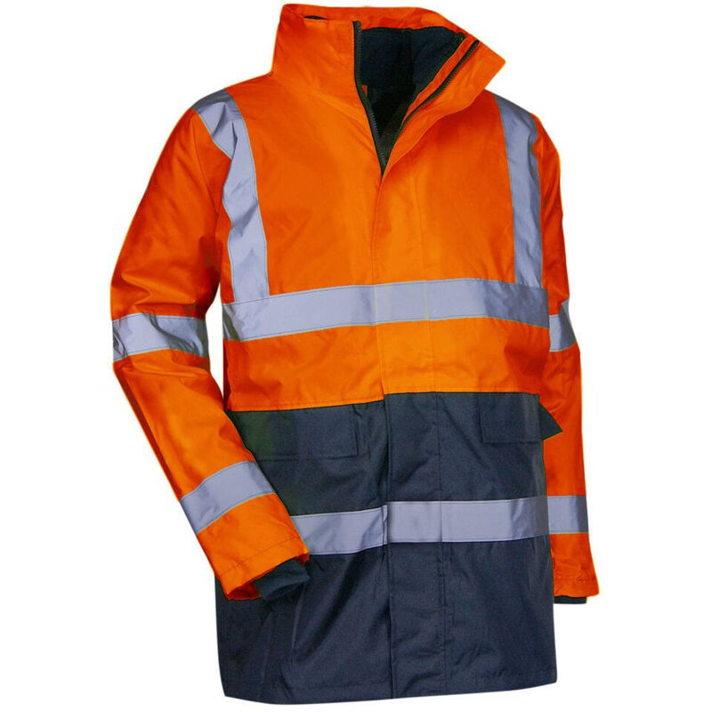 Caratteristiche: Cinturini retroriflettenti da 5 cm Cappuccio integrato nel collo con coulisse Occhi di ventilazione ascellari Cerniera sotto la patta 2 tasche inferiori chiuse da patta in velcro 1 tasca interna con chiusura a strappo Cuciture nastrate impermeabili. Fodera impermeabile e antivento, interno trapuntato, maniche removibili Giacca che può essere indossata da sola 1 tasca portacellulare sul petto a sinistra con patta chiusa da velcro 1 tasca con zip nella parte superiore della manica sinistra Blu Navy Composizione: 100% poliestere impermeabile