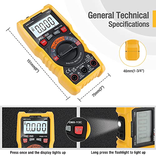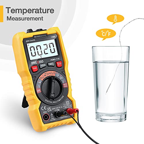 PREXISO Multimetro Digitale 6000 Conti, Multimeter con Retroilluminazione, Tester Digitale per DC AC Voltaggio, Corrente, Capacità, Resistenza, Diodo, Filo Vivo