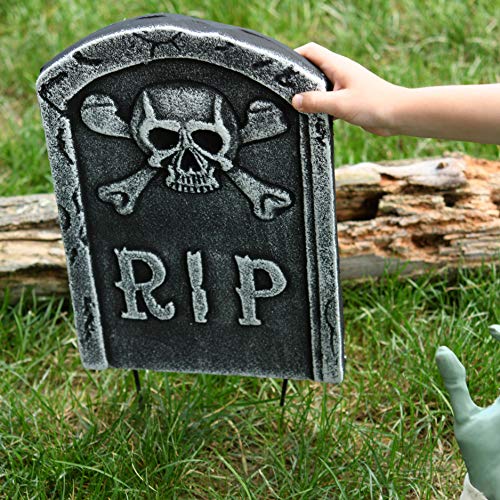 Il set include: lapide in schiuma RIP da 38 cm con 2 mani e braccia zombie.