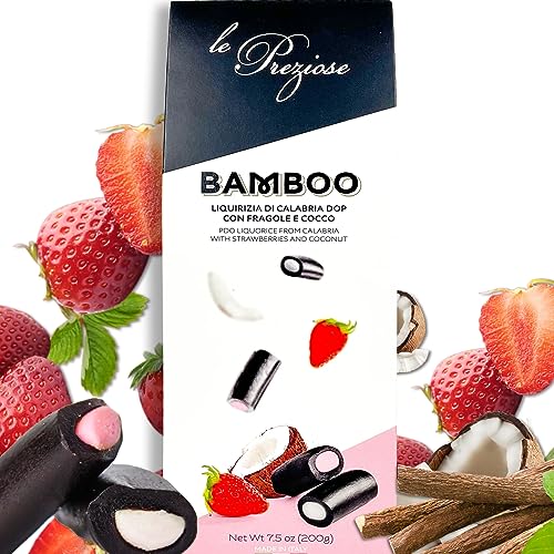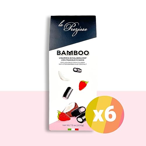 Le Preziose Bamboo, 6 astucci da 200g | Deliziosi bastoncini di liquirizia ripieni al gusto cocco e fragola