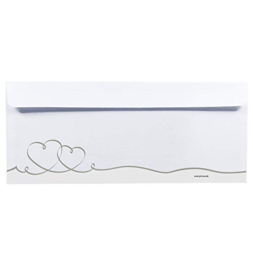 Pricaro - Buste da lettera, motivo a cuori, 25 pezzi, colore grigio argento