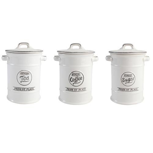 Pride of Place Tea Coffee and Sugar Storage Jars Ceramic White by T&G Woodware