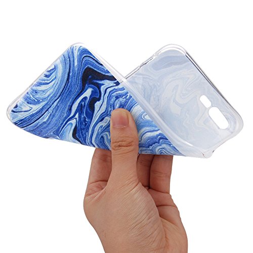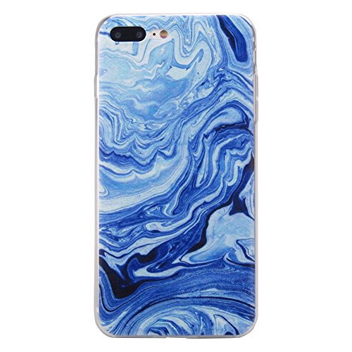 Pridot Slim Fit TPU Custodia Case per iPhone 7 Plus Natural Soft Shock-Absorbent Silicone Custodia with Marble Pattern Back Cover Premium Anti-Finger Print Matte Bumper (Ondulata Blu Stripes)