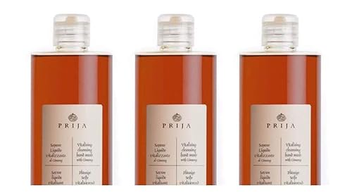 Prija Ginseng - Sapone liquido Wellness Spa, 3 flaconi da 380 ml, 2 dosatori