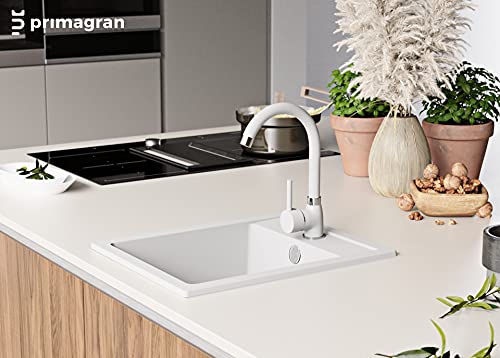 Primagran - Lavandino bianco 40 x 50 cm, lavello in granito + sifone classico da cucina a partire da 40 cm, in 5 colori con sifone e varianti antibatteriche, lavello da incasso