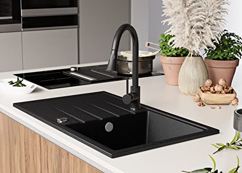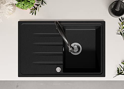 Primagran - Lavello da cucina antibatterico, 78 x 50 cm, in granito + set di scarico, per sottolavelli da 45, in 5 colori, lavello da incasso "Miland Smart"