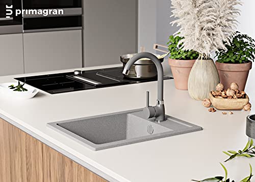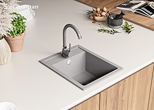 Primagran - Lavello da cucina in granito, 40 x 50 cm, con rubinetto, sifone automatico, per sottolavelli da 40 cm, in 5 colori, con diversi tipi di miscelatori, lavello da incasso, colore grigio