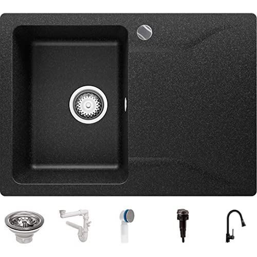 Primagran - Lavello in granito, 70 x 50 cm, lavello + rubinetto da cucina + sifone automatico, a partire da 45 pezzi, in 5 colori con rubinetto, varianti