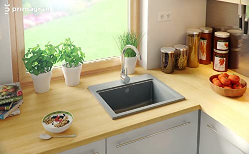 Primagran - Lavello da incasso grigio 51 x 43,5 cm, lavello + rubinetto cucina + sifone classico in granito a partire da 50